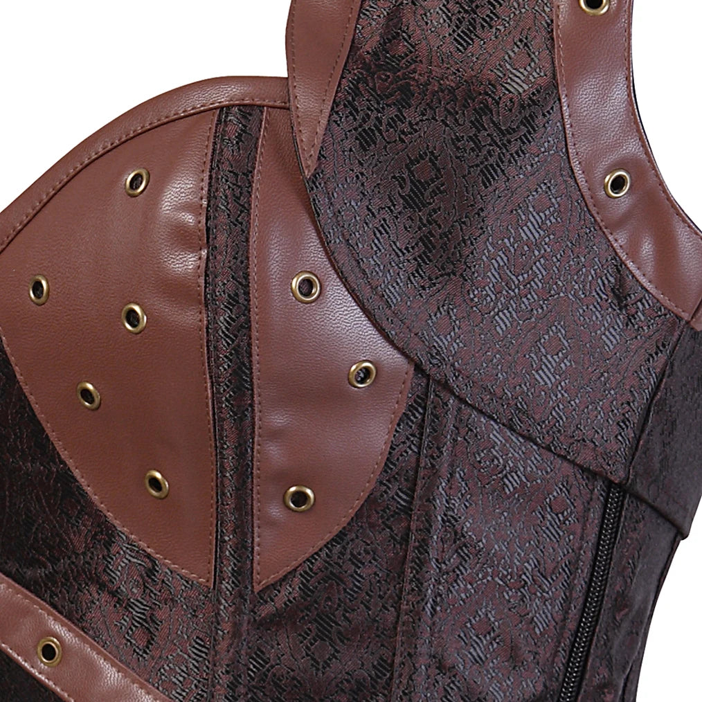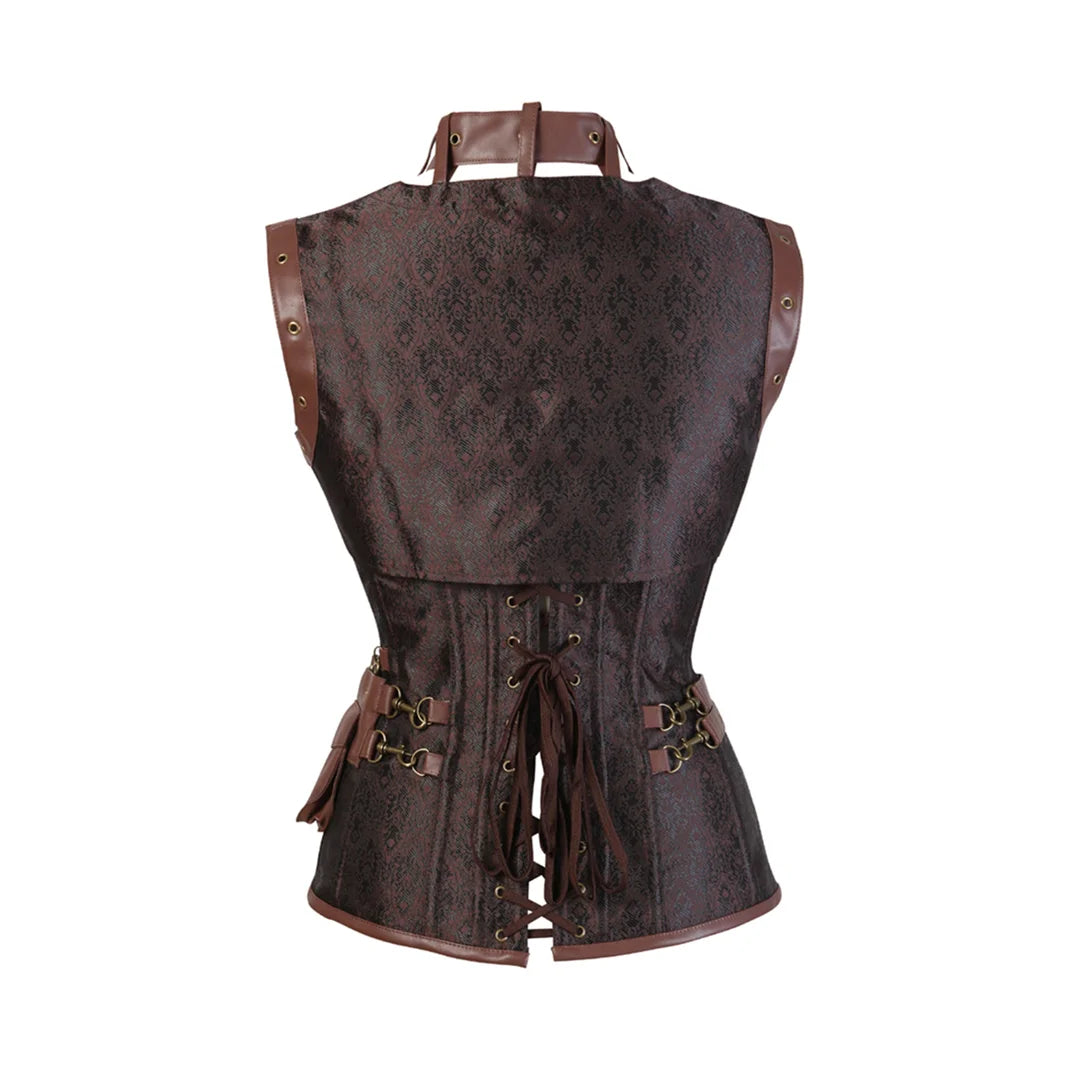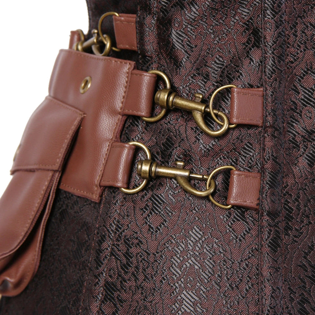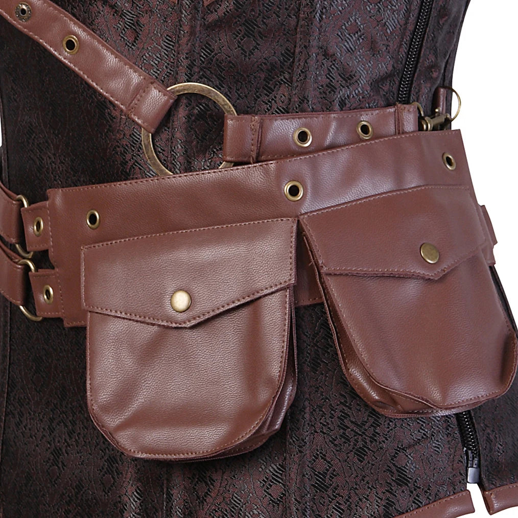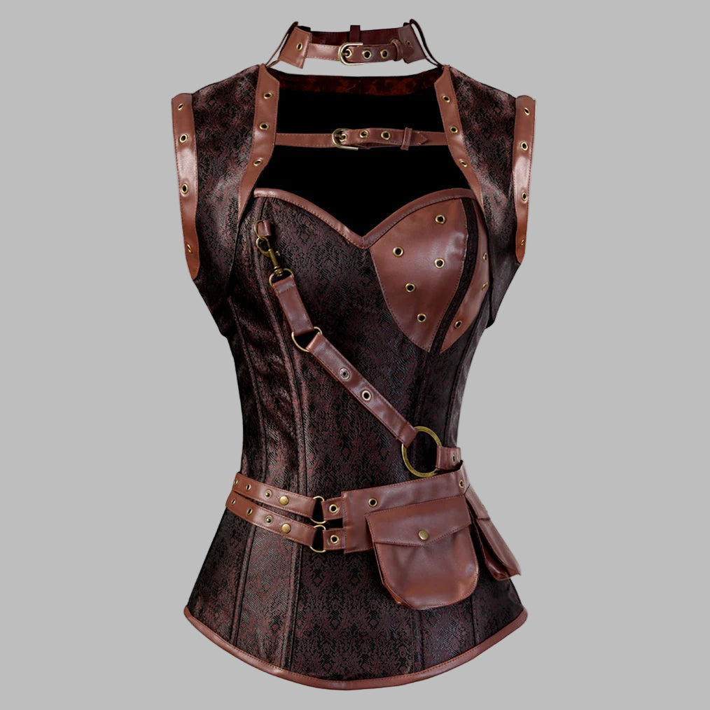 Steampunk korset i brun læder med dekorative stropper Se muligheder