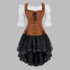 Steampunk Korset med Snøring og Asymmetrisk Nederdel Brun-Sort 6XL