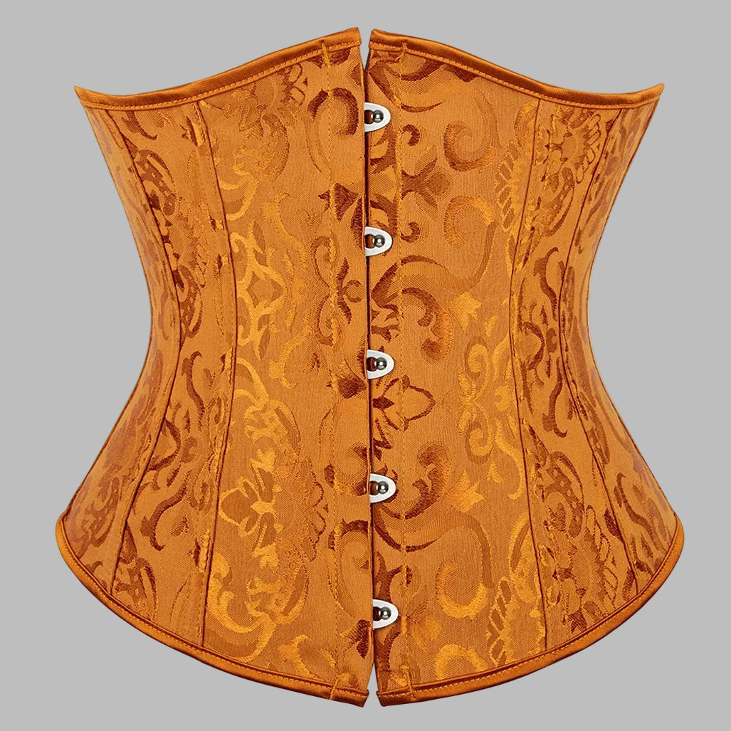 Steampunk Korset i Orange med Præget Vintage Mønster