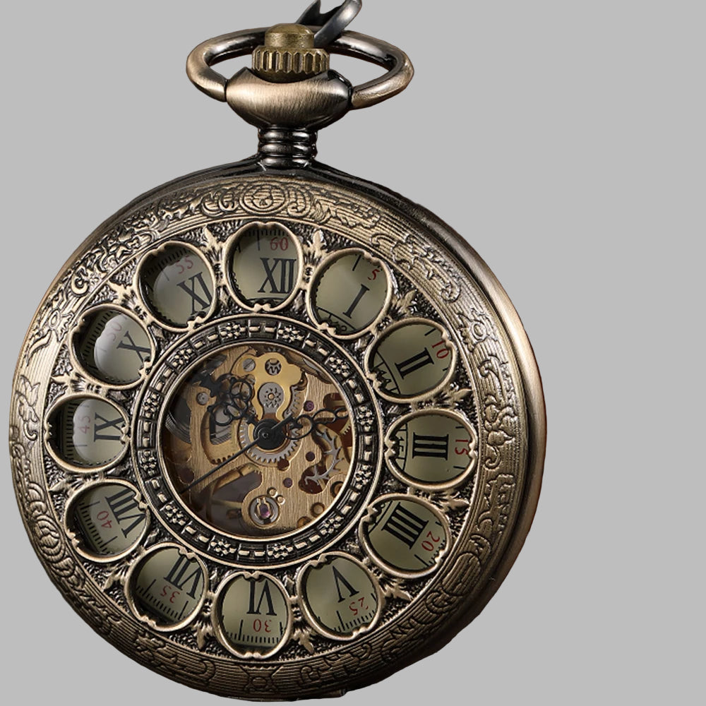 Steampunk Mekanisk Brun Lommeur med Kæde