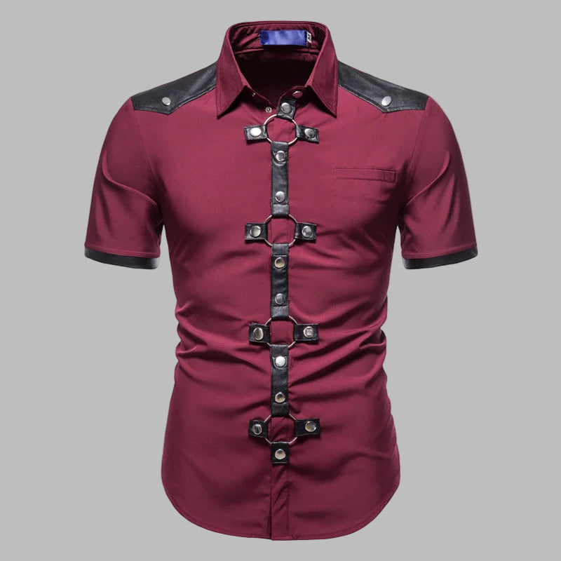 Steampunk Skjorte med Læderremme Bordeaux Kort Ærme