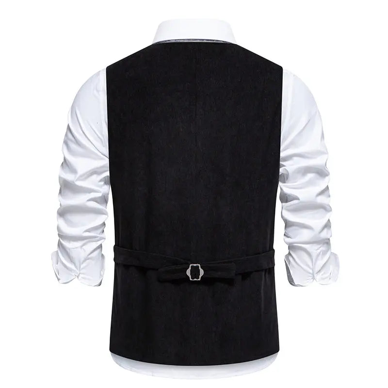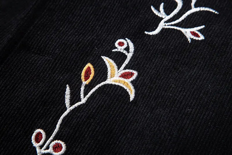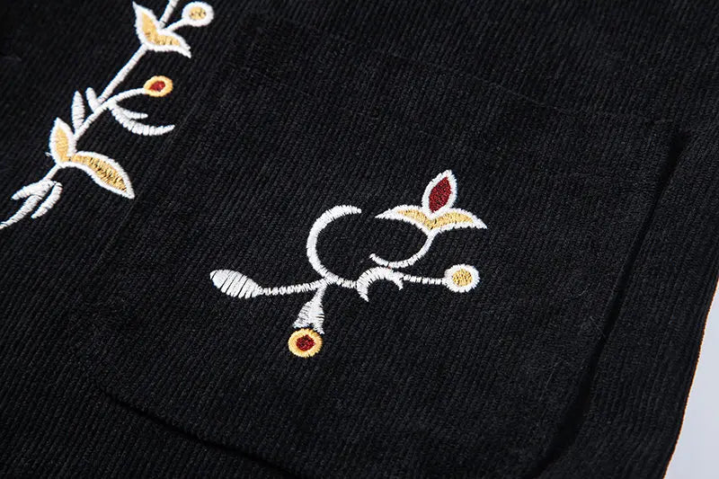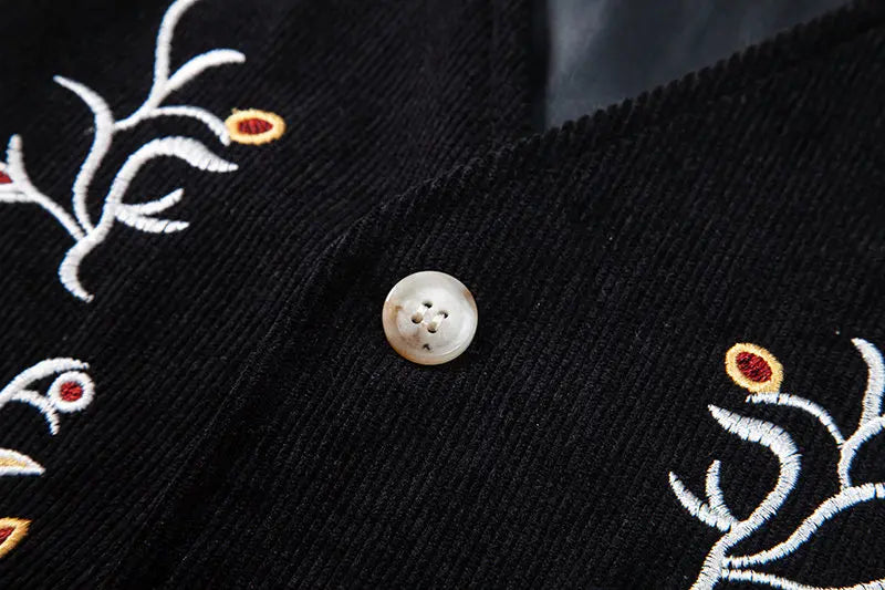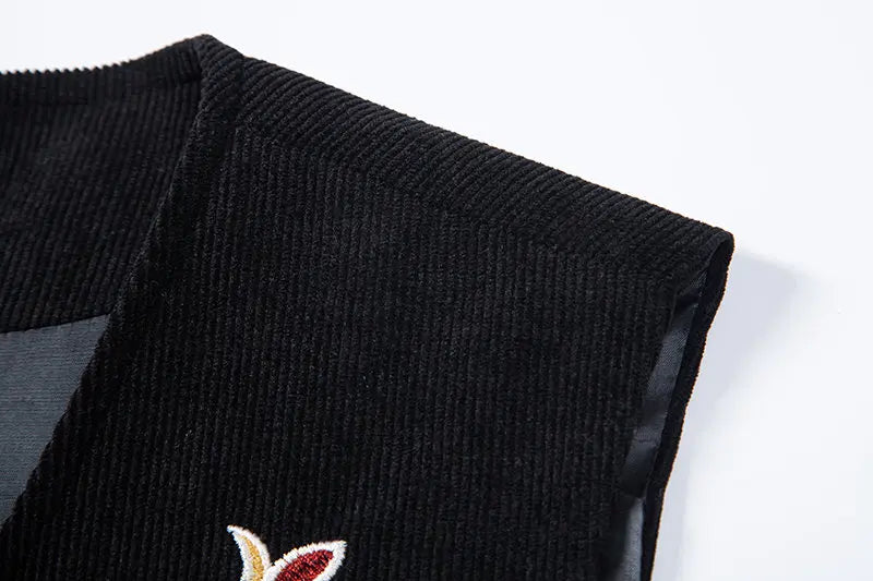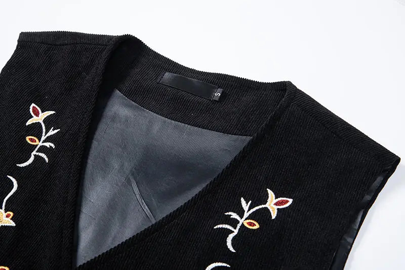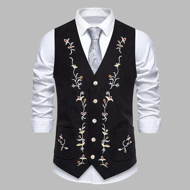 Sort herrevest med blomsterbroderi i steampunk-stil, sort