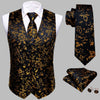 Sort Steampunk Vest Sæt med Sorte og Guldblomster Mønstre