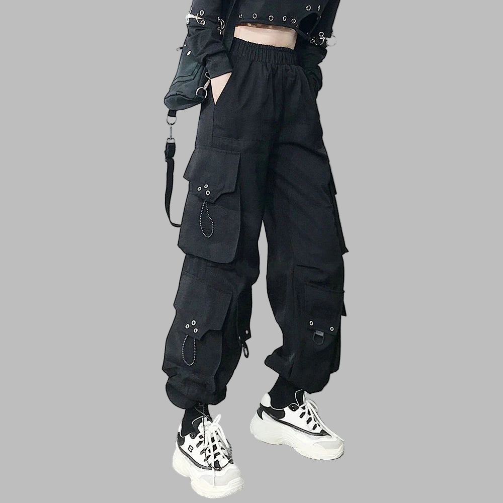Taktiske Punk Bukser med Lommer Kæder Sorte Grunge